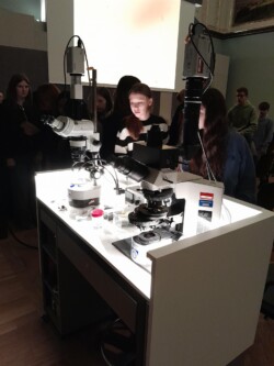 Wir konnten verschiedene Bodenorganismen in einem Mikroskop anschauen, wie beispielsweide die Milbe. Dabei erfuhren wir, dass sie zur Klasse der Spinnentiere zählen. Darunter gibt es sowohl wichtige Zersetzer als auch Raubmilben, die kleine Insekten oder auch andere Milben jagen. Auch Asseln, Weißwürmer, Käferlarven, Pilze, Rädertierchen, Thekamöben konnten wir vergrößert betrachten und haben dabei jeweils einiges über ihre Bedeutung für den Boden erfahren.