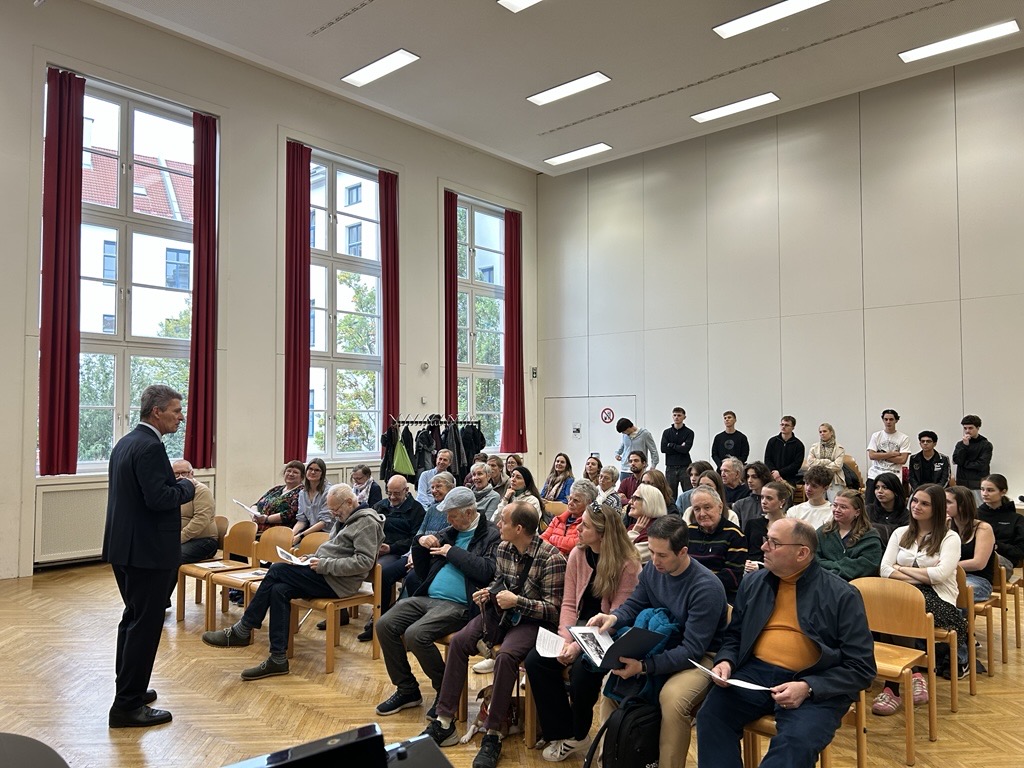 Die Aufarbeitung der lokalen Geschichte der NS-Verbrechen im dritten Wiener Gemeindebezirk hat sich der Verein Steine des Gedenkens zur Aufgabe gemacht und so kam es am Freitag, den 17. Oktober 2025 zu einer Gedenktafel-Enthüllung an unserer Schule und einem anschließenden Festakt im Festsaal.