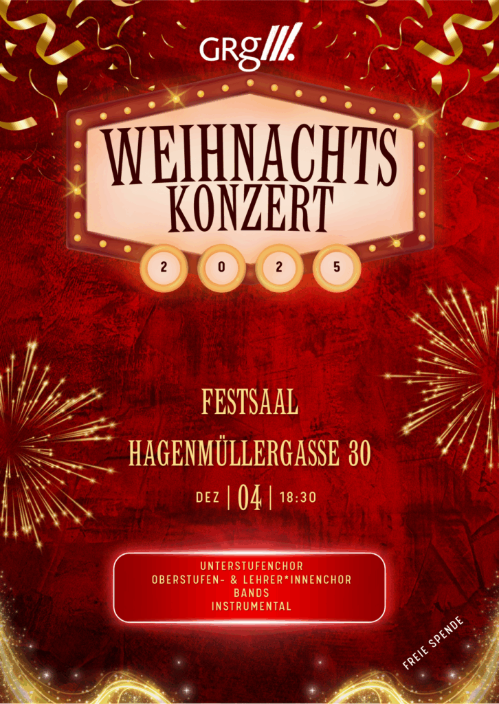 Weihnachtskonzert 27. November 2025 Valentin Wong Startseite am 04.12.2026 um 18:30 im Festsaal mit Unterstufenchor Oberstufen- & Lehrer*innenchor Bands Instrumental freie Spende