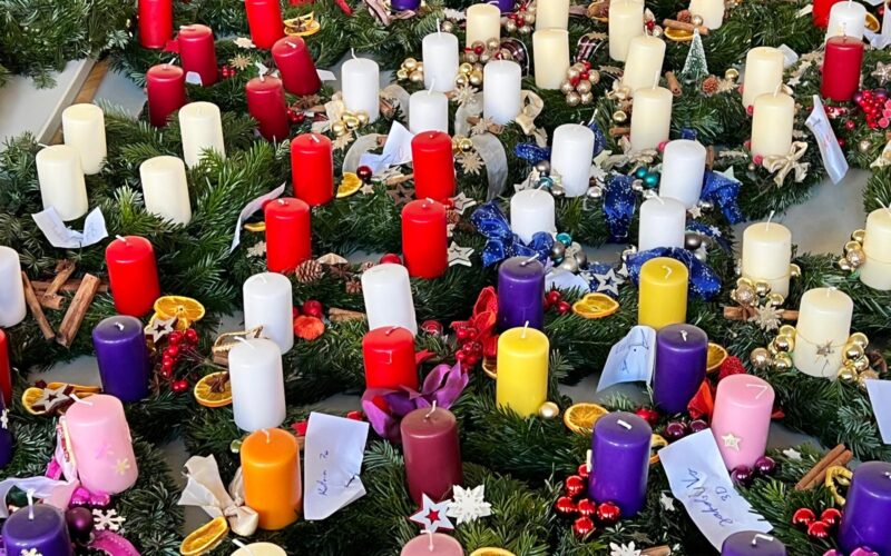 Heuer machten wieder besonders viele Schüler*innen beim Adventkranzbasteln mit. In einer kleinen aber stimmungsvollen Feier wurden diese am Beginn des Advents gesegnet. Die Buntheit der Kränze führte uns auch die